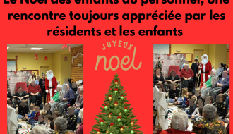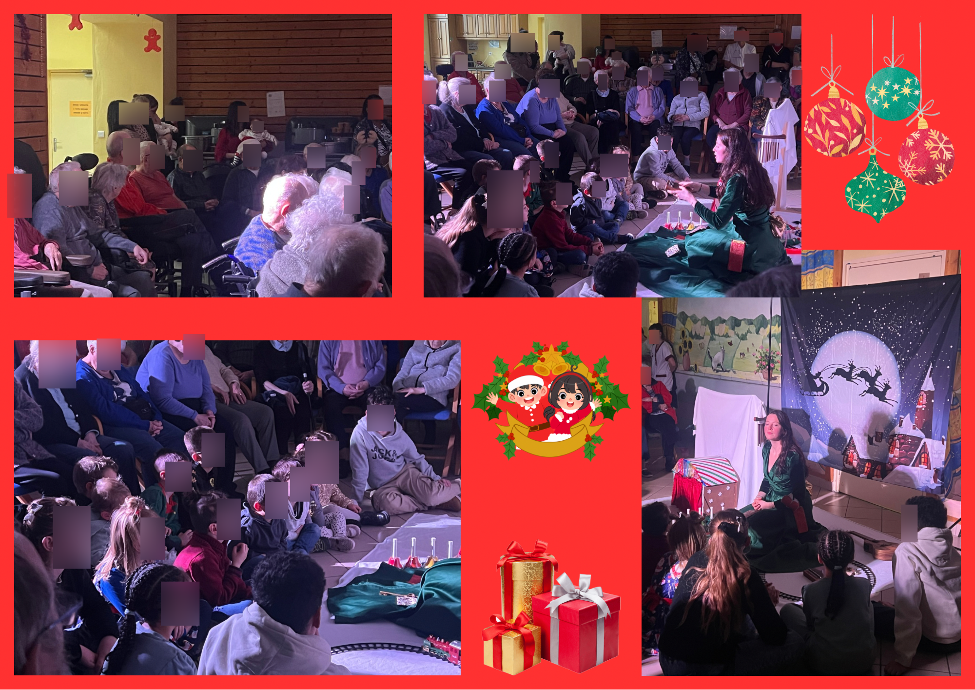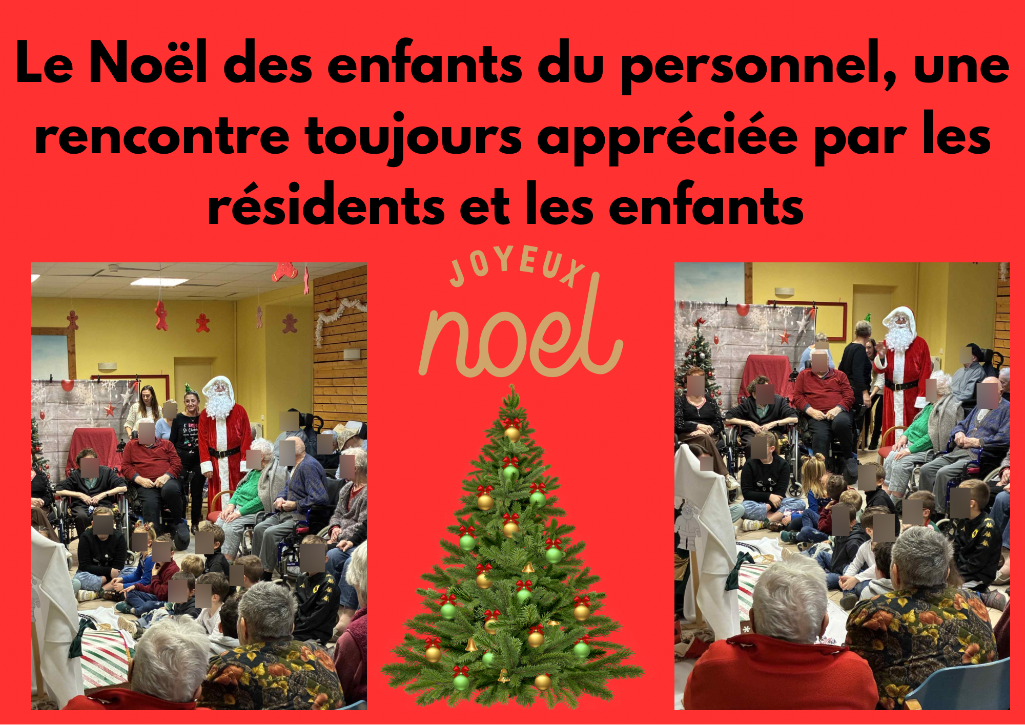 – le Noël des enfants du personnel, un moment intergénérationnel qui ravit les petits comme les grands avec un très beau spectacle Mah’Na suivi de la venue du Père Noël (un résident qui a su faire son rôle avec beaucoup de bienveillance et d’enthousiaste.)